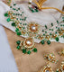 Royalty at first sight — the Saba Bridal Necklace Set is everything a modern bride dreams of. Featuring a grand faux Polki necklace paired with oversized statement jhumkas and a solid stud top, this set exudes traditional luxury with a contemporary edge.